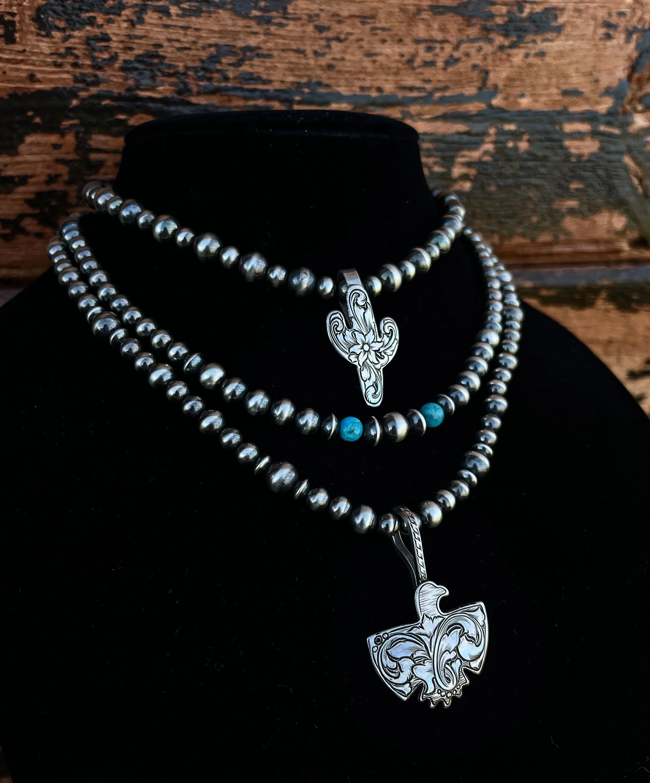 Kingman and Sterling Pendant Stack. Pendants made by Rontoo Hargrove Silversmith