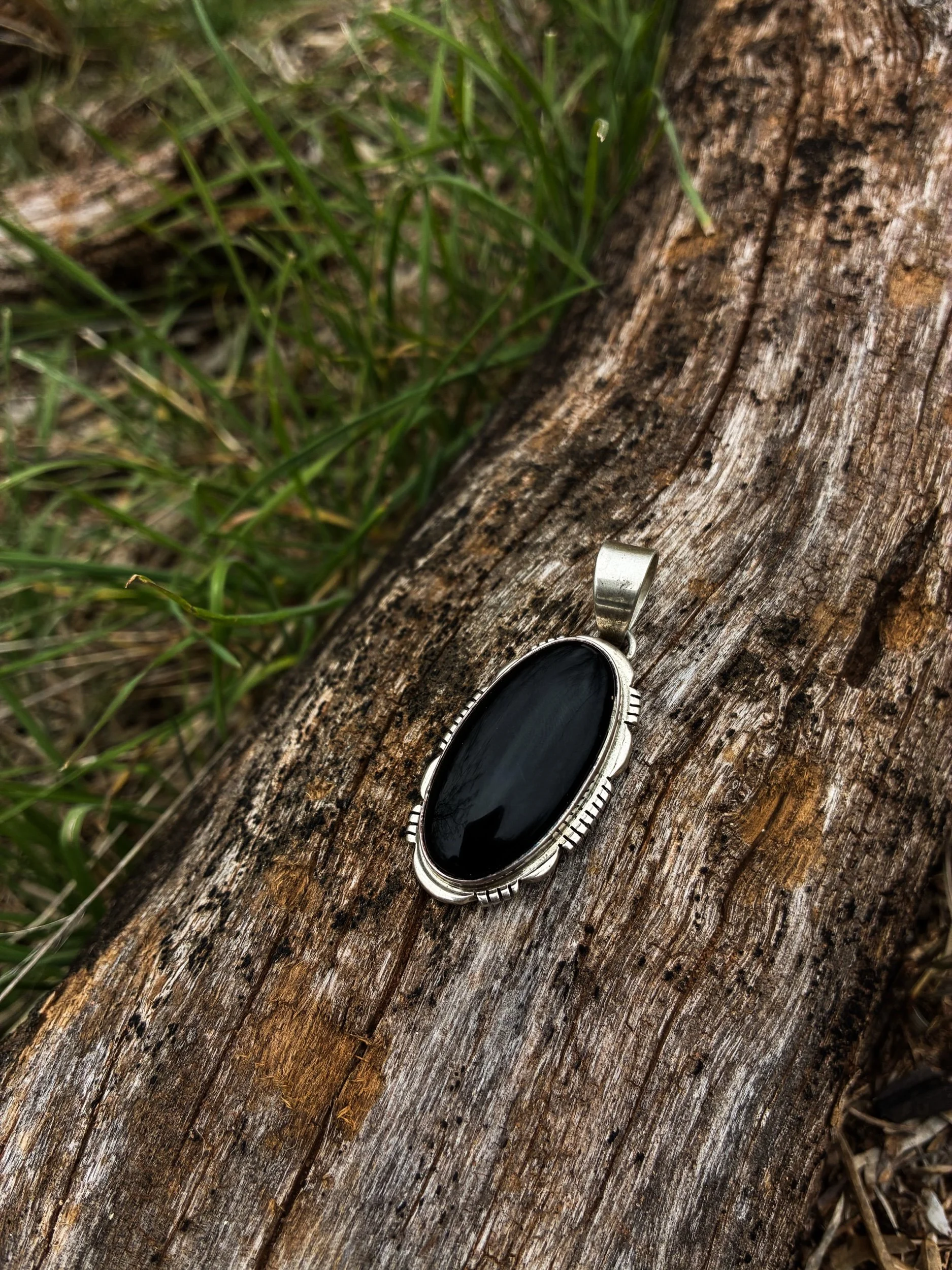 2” x 1/2” Black Onyx pendant made by Leslie Yazzie
