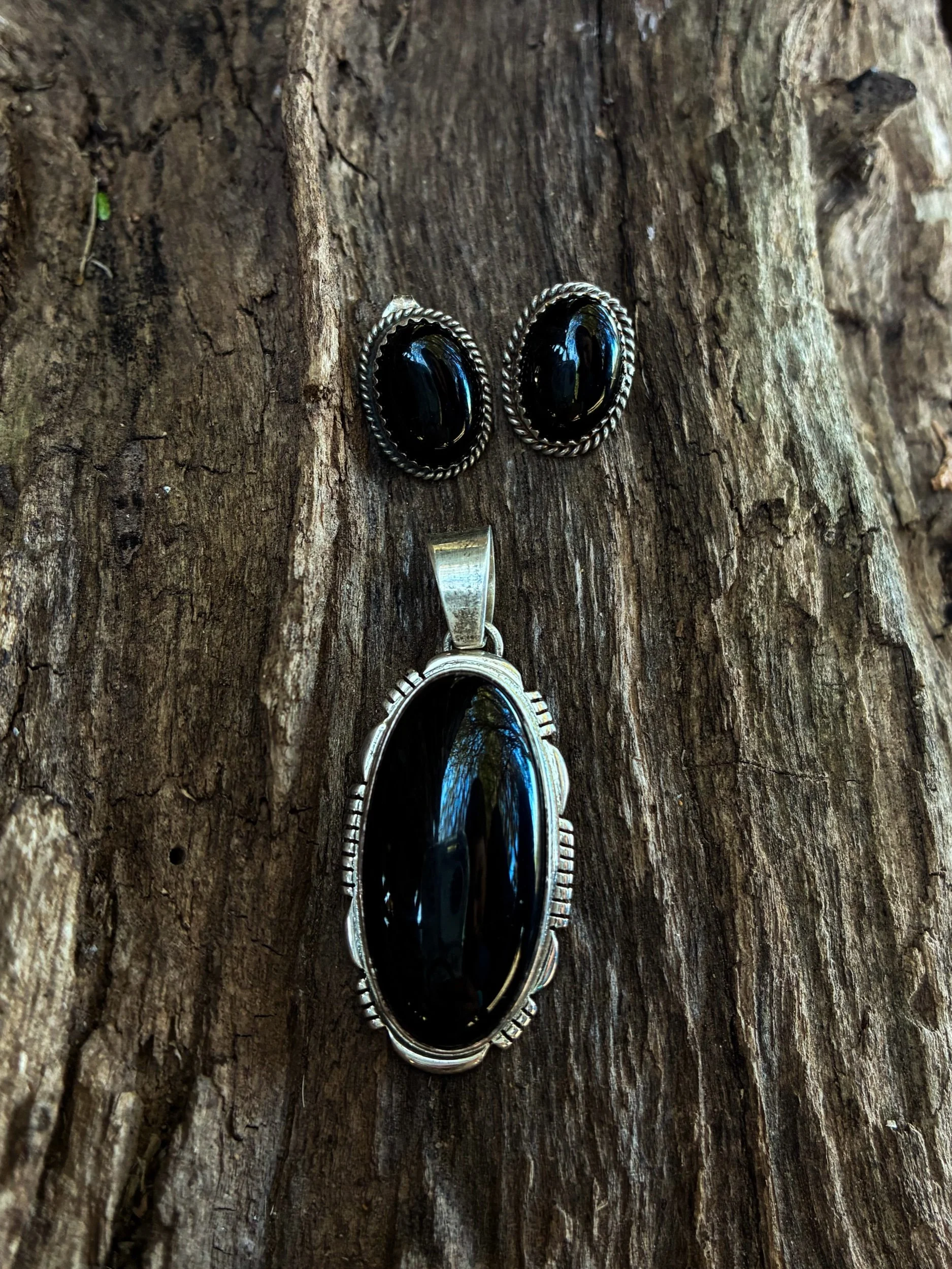 2” x 1/2” Black Onyx pendant made by Leslie Yazzie