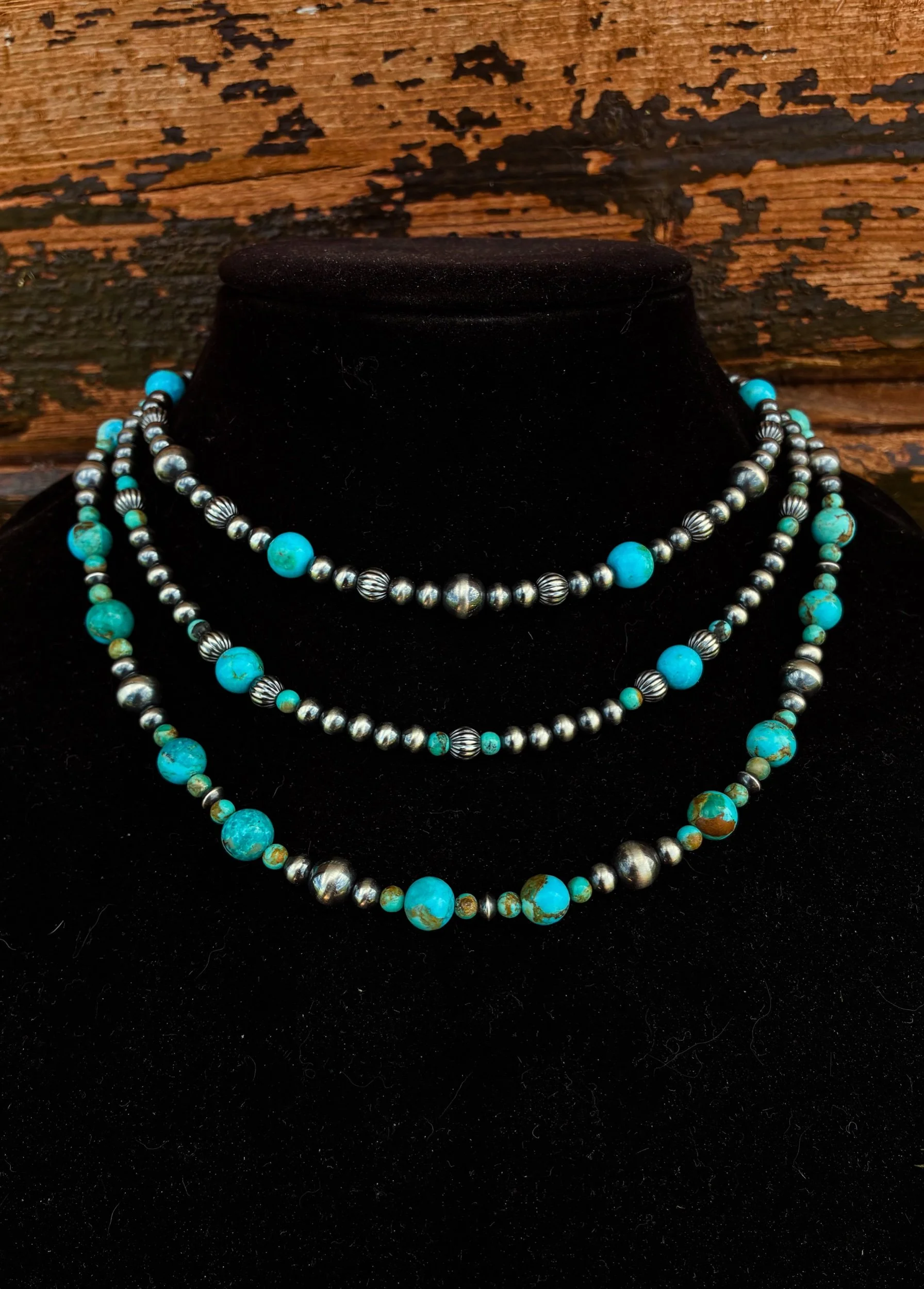 Image 1 of 5 Image 2 of 5 Image 3 of 5 Image 4 of 5 Image 5 of 5 Kingman Stack from $200.00 14-16” and 2 16-18” necklaces Sterling & Kingman turquoise 4-8mm Necklace: Select Necklace Top Necklace (14-16”) Middle Necklace (16-18”) Bottom Necklace (16-18”) Stack (All 3 Necklaces) Purchase Added! 14-16” and 2 16-18” necklaces Sterling & Kingman turquoise 4-8mm