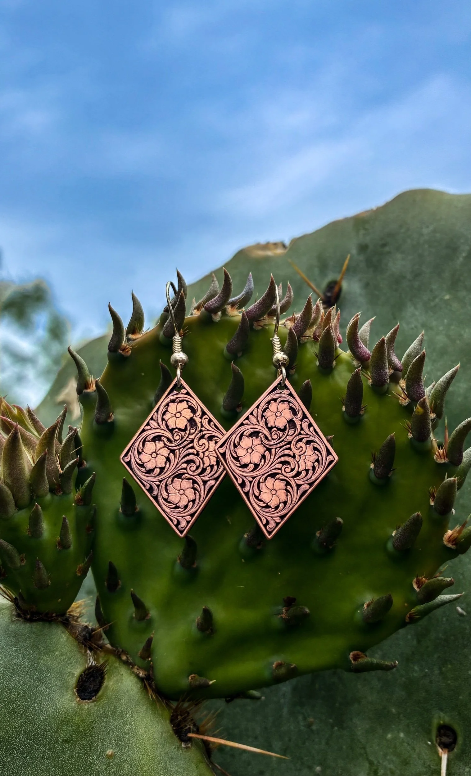 Image 1 of 1 Diamond Earrings from $45.00 Copper or sterling Laser engraved Sterling hooks Metal: Select Metal Copper Sterling Purchase Added! Copper or sterling Laser engraved Sterling hooks