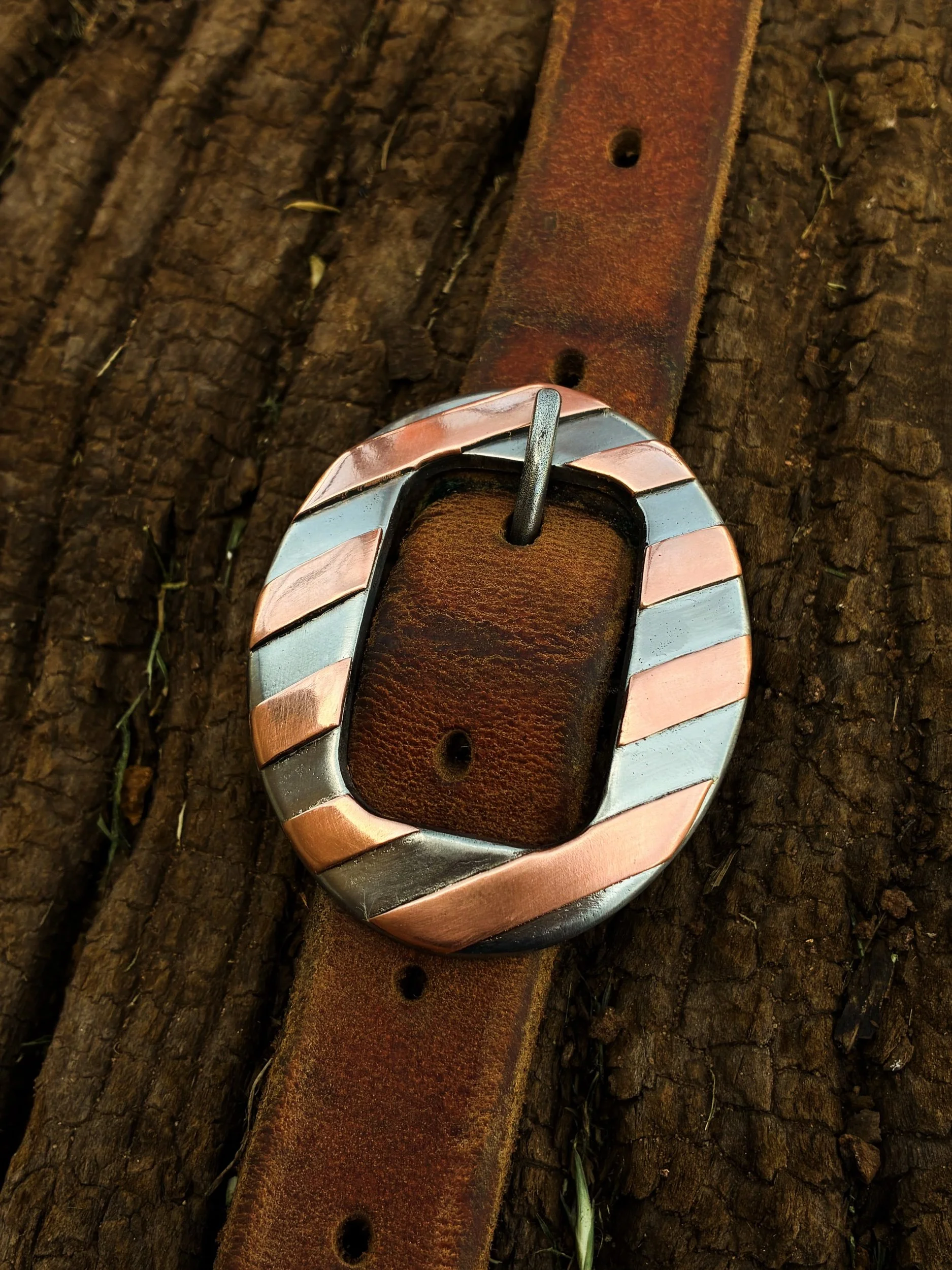 Image 1 of 2 Image 2 of 2 1” buckle $100.00 Steel and copper Handmade by El Sol Fits 1” leather Purchase Added! Steel and copper Handmade by El Sol Fits 1” leather